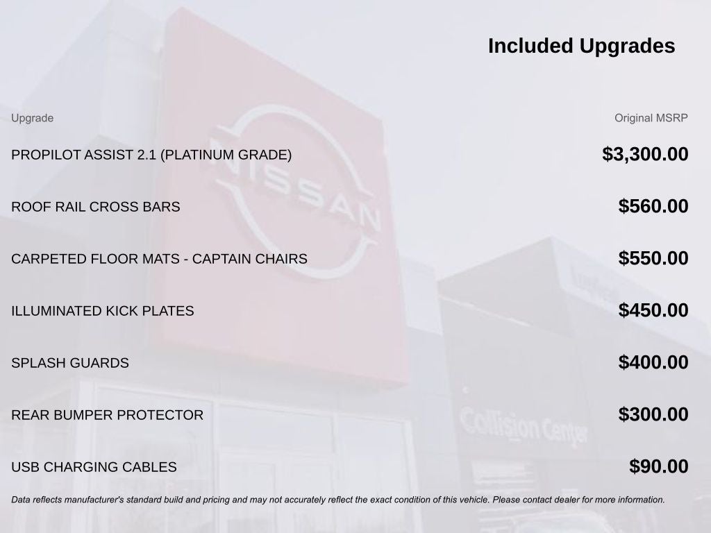 This 2025 Nissan Armada Platinum is more than just a vehicle; it's a statement of refined taste and uncompromising quality. With its impressive capabilities, luxurious amenities, and unparalleled attention to detail, it's the perfect choice for those who demand the very best. We invite you to experience the exceptional craftsmanship and advanced technology that make this Armada Platinum a true standout in its class. Schedule a test drive today and discover the difference for yourself. Price includes: $1500 - Nissan MY25 Bonus Cash. Exp. 03/02/2026 Price includes dealer added accessories.