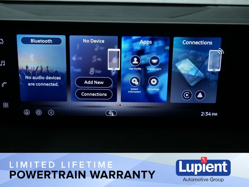 - Radio: AM/FM w/RDS/MP3 -inc: 4 speakers, 12.3" NissanConnect multimedia center display, Bluetooth® hands-free phone system, streaming audio via Bluetooth®, hands-free text messaging assistant, Siri Eyes Free, Google Assistant voice recognition, wireless Apple CarPlay and Android Auto and (2) front USB connection port (type C)